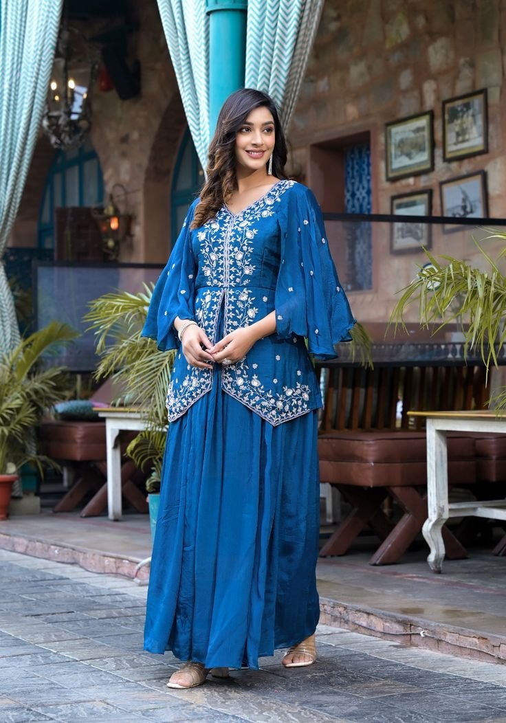 Step into elegance with this beautifully designed kurti sharara set featuring delicate embroidery and a graceful silhouette. The kurti showcases intricate detailing while the sharara adds volume and flow. Paired with a soft dupatta, this outfit is perfect for festive celebrations and special occasions.