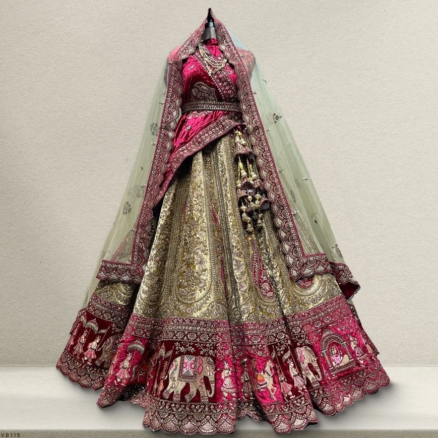 This stunning bridal lehenga is crafted to give a luxurious and royal appearance, perfect for weddings and grand occasions. The rich maroon and gold color combination enhances its traditional charm, while the intricate embroidery adds an elegant and timeless appeal.